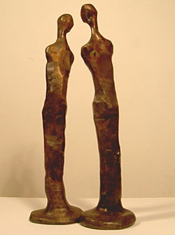 I made these bronze figures, who are leaning toward each other. They represent supporting one another during loss.