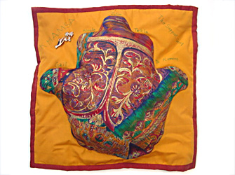 One of many meanings for Khamsa, a hand symbol in Jewish and Islamic lore, is "support group." The five fingers on this piece represent me with: my partner, Tekla; sister Nicole; sister-in-law, Gail; wonderful surgeon, Dr. Lucinda Romero; and the support group that loved and supported me during my adventure with breast cancer.