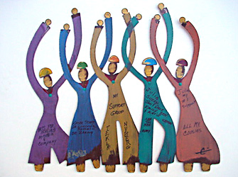 These figures symbolize the love, tenderness, and encouragement that have been freely given to me by my family, friends, participants in Arts for Healing, and my surgeon and oncologist.