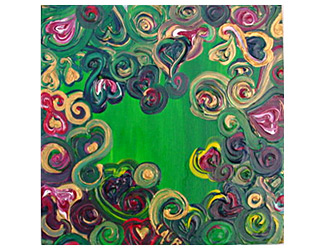 In May 2003 I underwent a bone marrow transplant to cure a fatal cancer. I had a difficult recovery, so in Fall 2004 my husband, John, learned a "compassionate intent" meditation from the Institute for Noetic Sciences. During this daily meditation he directed compassionate intent to me to promote my healing. After three months I painted my first Love Garden - an expression of what it felt like to receive this healing energy. I went on to create over 100 pieces of Love Garden art!