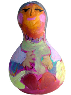 When I woke up in the hospital after breast cancer surgery my first thought was, "Gourds! I've got to paint gourds!" So I painted this woman: a strong, Native American healer. Looking at her kept me in touch with my vision of health for myself.