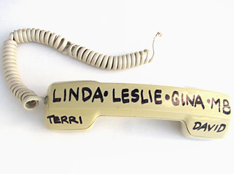 When my dear partner, Liz Vayhinger, was going through her cancer treatment, and later during her process of dying, the telephone was my lifeline to my friends. On this telephone handset I have written the names of people I especially turned to and relied on for support and connection: Linda, Leslie, Gina, MB, Terri, David, and Loretta.